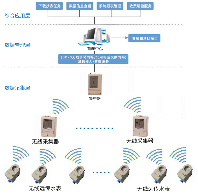 既有針對供水、燃氣、電力、供暖、中水、熱水等不同領域專業管理方案,也可提供綜合收費管理的多表集抄實現方案。